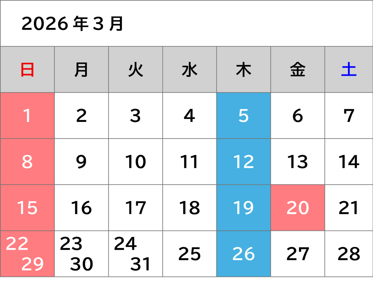 木曜・日曜・祝日